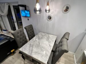 £899.00Original price was: £899.00.£799.00Current price is: £799.00.Transform your dining space into a sanctuary of elegance with our Marble Dining Table Set. Immerse yourself in the timeless beauty of marble, meticulously crafted into a cohesive set that marries sophistication with functionality. Each piece boasts exquisite detailing, offering a luxurious dining experience that becomes the focal point of any room. Elevate your home with our curated Marble Dining Table Set, where opulence meets practicality for a dining ensemble that stands the test of time.