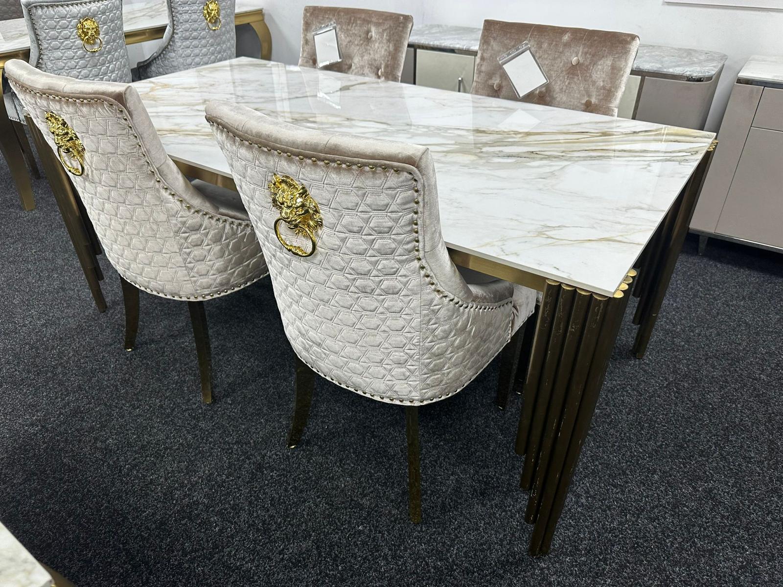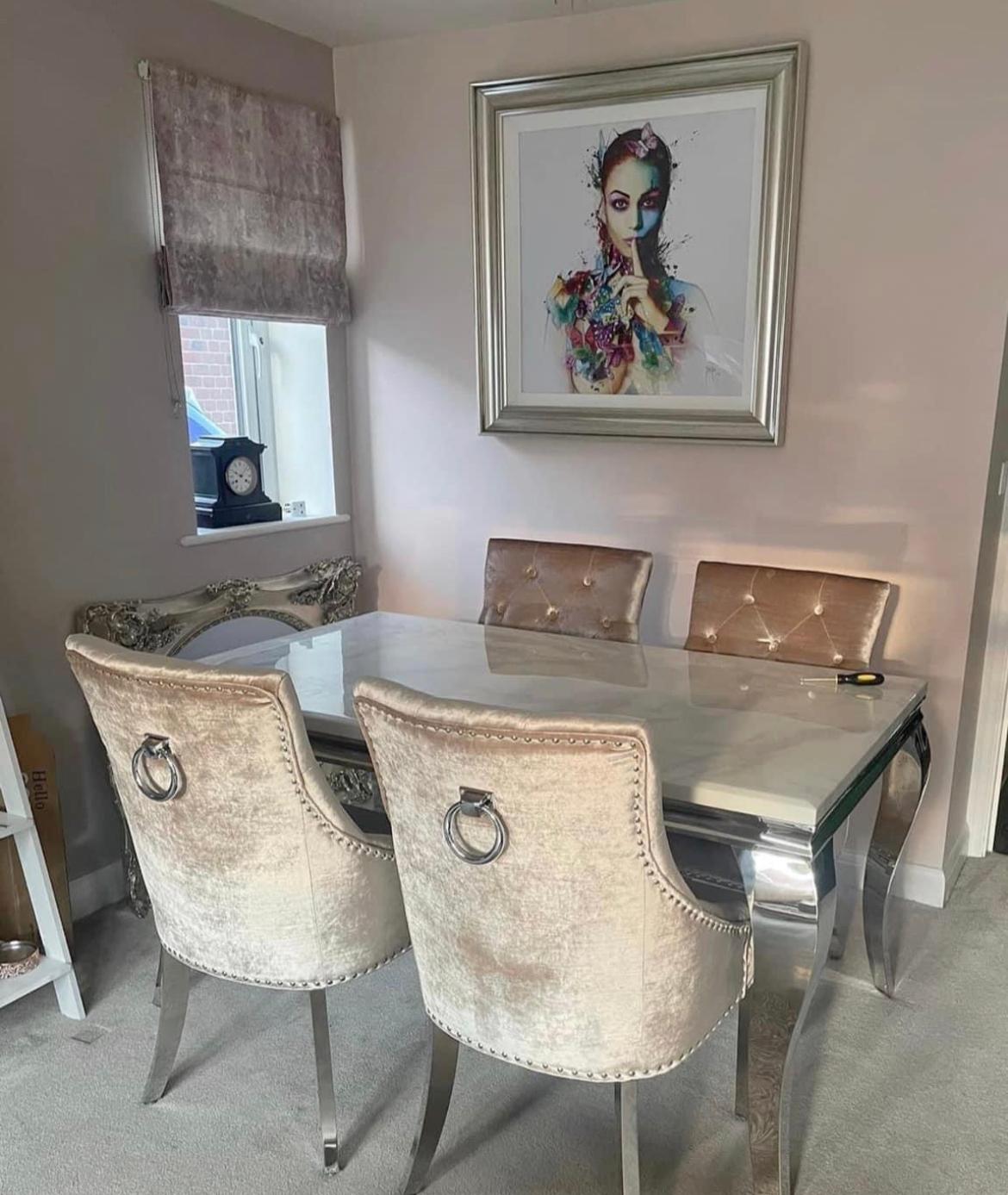 The Rome dining table is stunning with its polished steel legs and marble top, great for four people this dining table will create an instant focal point with its four standing legs and modern good looks. It is also family-friendly with its smooth marble top making it easy to wipe clean.