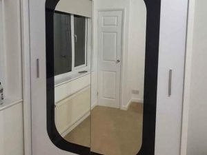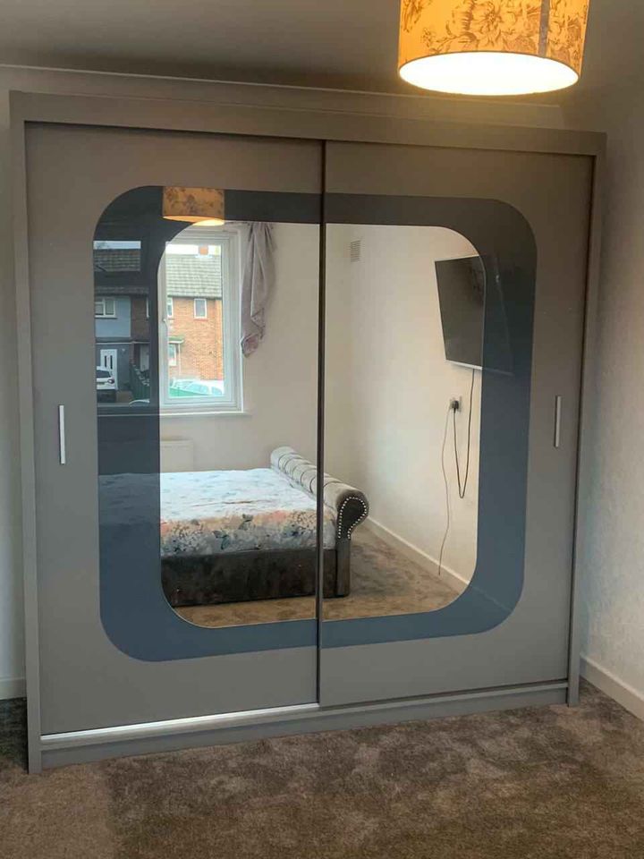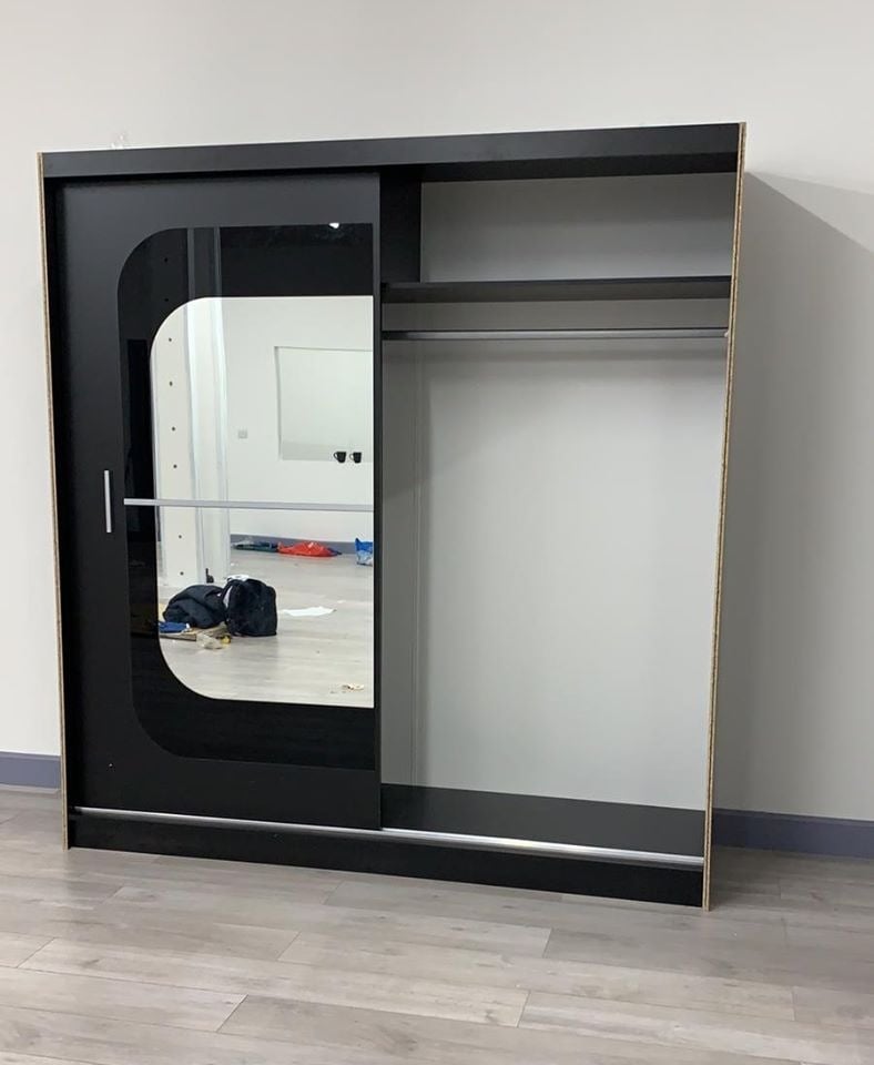 is a Beautiful 2 and 3 door mirror sliding wardrobe with LED LIGHT. It has plenty of space for hanging and shelves. Brand new design with elegant matte finish with different colors and sizes. MILAN Wardrobe introduces a new dimension to this popular sliding door wardrobe range, thanks to its glittering polished chrome handles and trims, which really stand out against both light and dark finish options. This sliding door wardrobe features double mirrored glass sliding doors, with chrome trims and Holm oak carcass. The CHILESIA Sliding Door Wardrobe defines luxury in the bedroom. With plenty of storage and elegant paneled doors with a full-length mirror, this wardrobe is the ultimate package with a price tag affordable for most! The full-length mirror on this wardrobe not only adds light to your bedroom but creates the illusion of enlarged bedroom space. The elegant horizontal paneled door further adds to its beauty and also creates a calm, tranquil aura – perfect when you want your bedroom as a place where you can escape the hassle and bustle of the day. This wardrobe also benefits from the high-quality sliding mechanism and you would barely hear any noise with the smooth gliding motion of the doors. It is crafted from 16mm laminated particle board to give you beauty, stability and durability all in one.