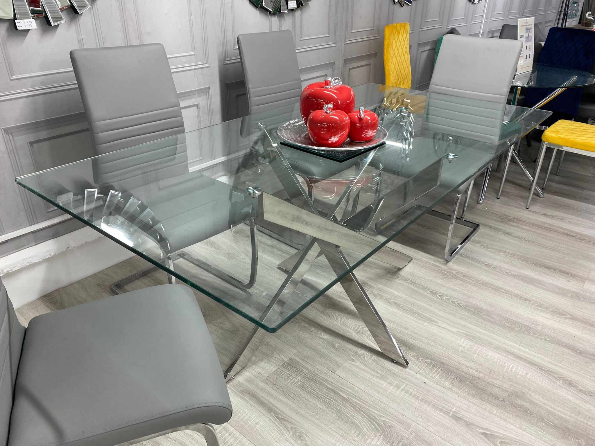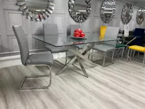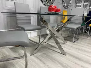 Upgrade your dining experience with our Clear Glass Dining Table. Immerse your space in modern sophistication as the crystal-clear glass top brings an airy and contemporary feel to your dining area. The sleek design and minimalist aesthetic make it a versatile choice for any decor style. Crafted with precision and durability in mind, this table adds a touch of elegance to every meal. Create a light and inviting atmosphere in your home with our Clear Glass Dining Table, where style meets practicality in perfect harmony.
