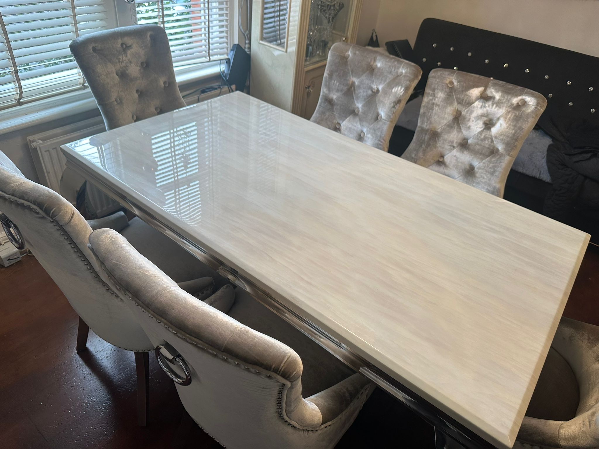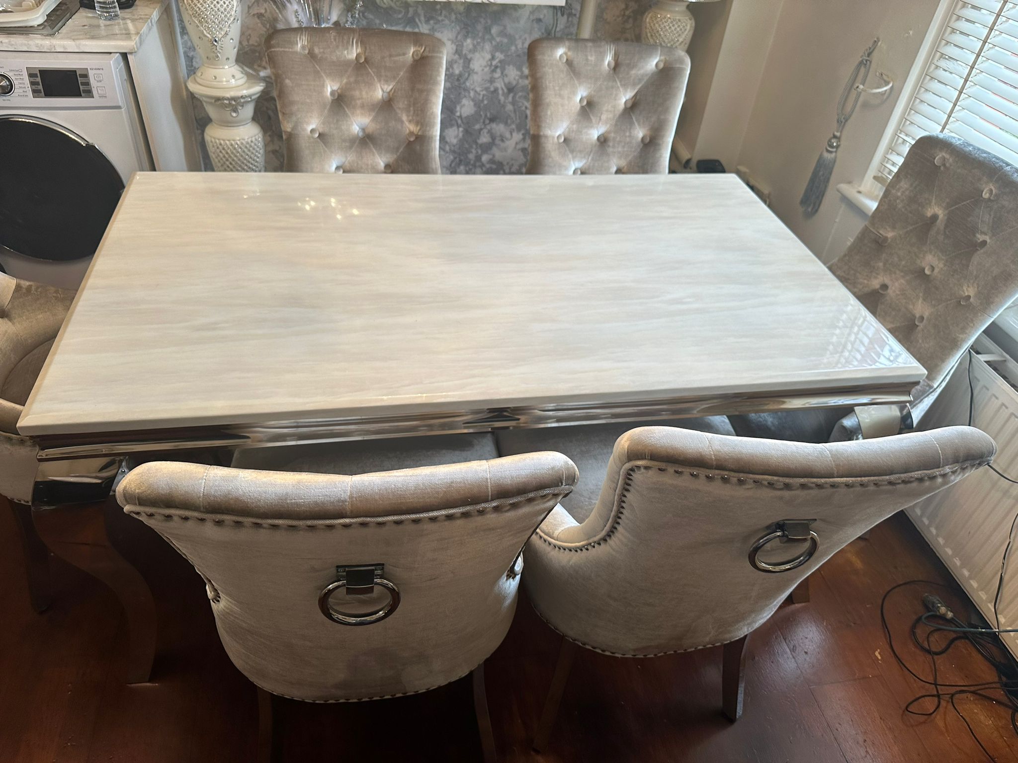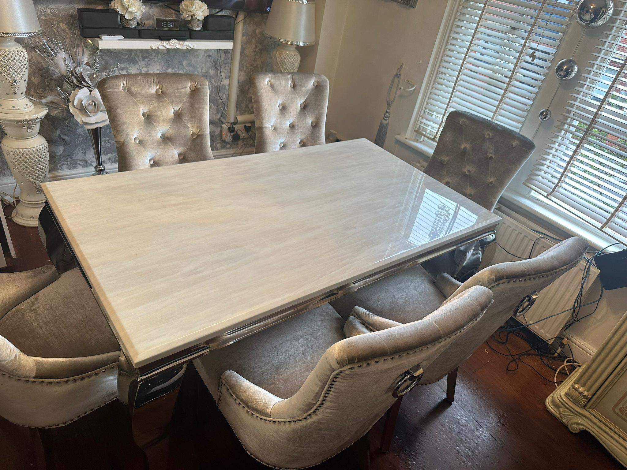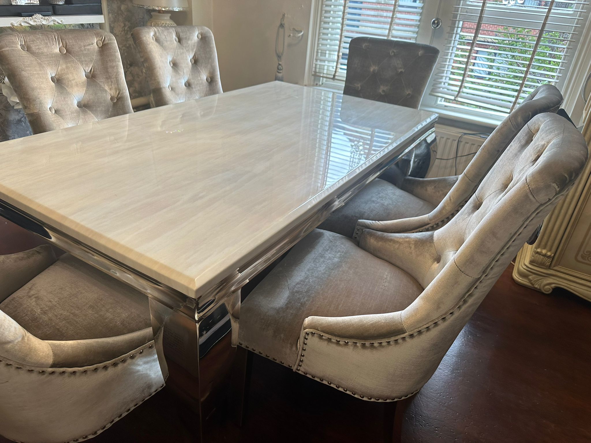 Real top Cream louis marble table with 4 , 6 , 8 chairs
