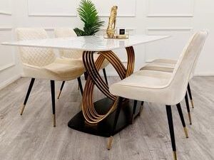 Orion Gold Dining Table with Polar White Sintered Stone Top