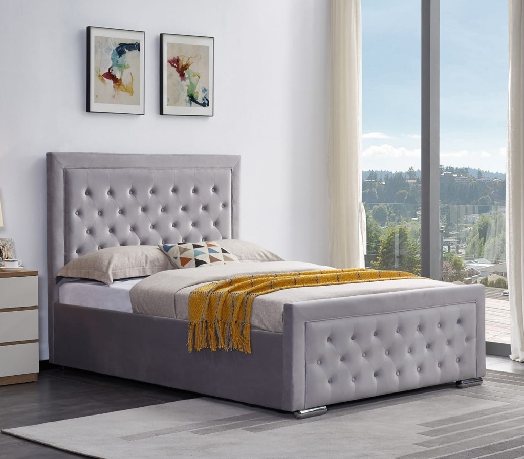 £599.00Stylish, Modern, High Gloss White Storage Bed frame with different types of headboards. This Fantastic low foot end sturdy bed frame comes with flat MDF wood base. This bed offers a storage area shown underneath the bed as in the picture.