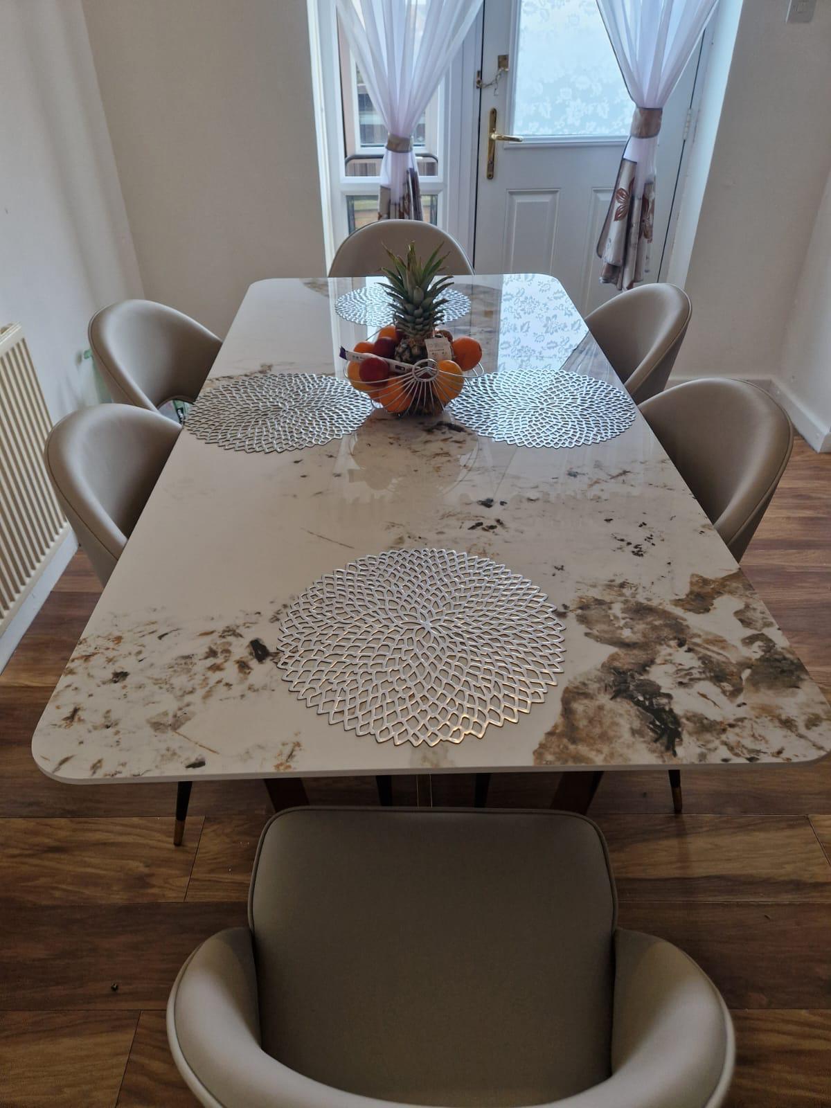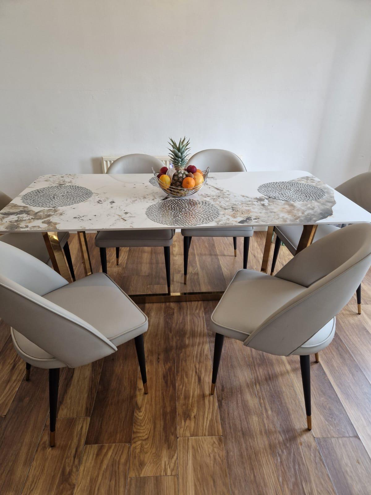- Experience opulent dining with our Lucian White Marble Dining Table Set. Immerse your space in the pure elegance of white marble, perfectly harmonized with modern design. This meticulously crafted dining set seamlessly blends luxury and functionality, creating a captivating focal point for your dining area. Elevate your hosting game and savor every meal in style. The Lucian White Marble Dining Table Set is not just furniture; it’s a statement of refined taste and sophistication.