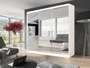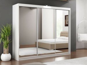 is a Beautiful High Gloss 2 and 3 door mirror sliding wardrobe with LED LIGHT. It has plenty of space for hanging and shelves. Brand new design with elegant matte finish with different colors and sizes.
