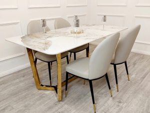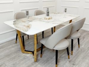 Experience opulent dining with our Lucian White Marble Dining Table Set. Immerse your space in the pure elegance of white marble, perfectly harmonized with modern design. This meticulously crafted dining set seamlessly blends luxury and functionality, creating a captivating focal point for your dining area. Elevate your hosting game and savor every meal in style. The Lucian White Marble Dining Table Set is not just furniture; it’s a statement of refined taste and sophistication.
