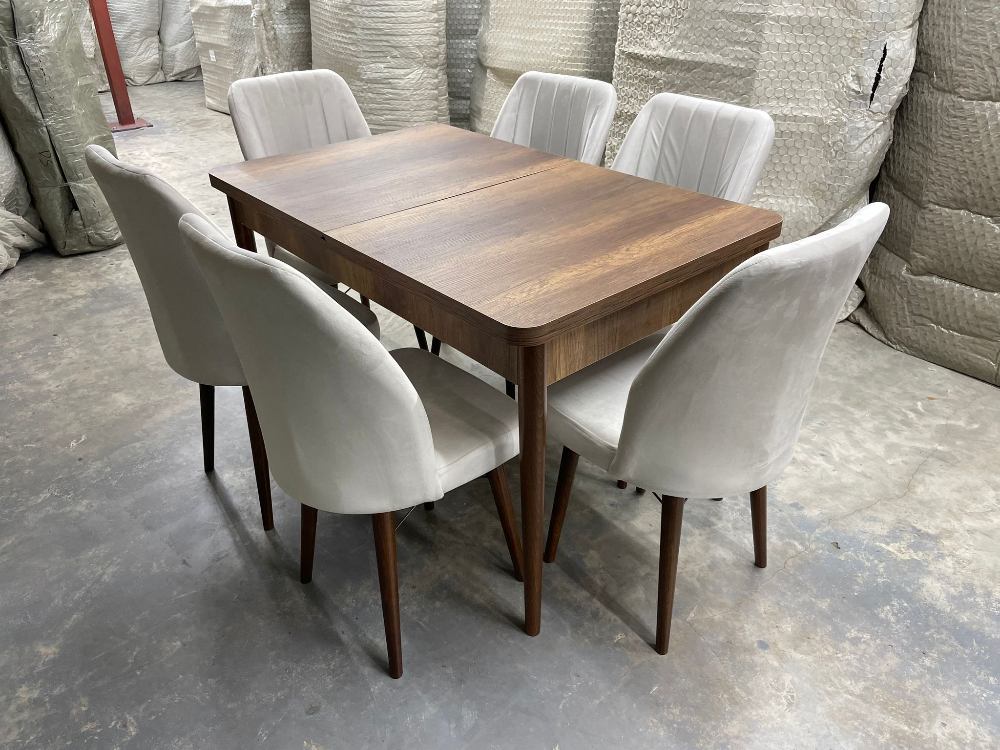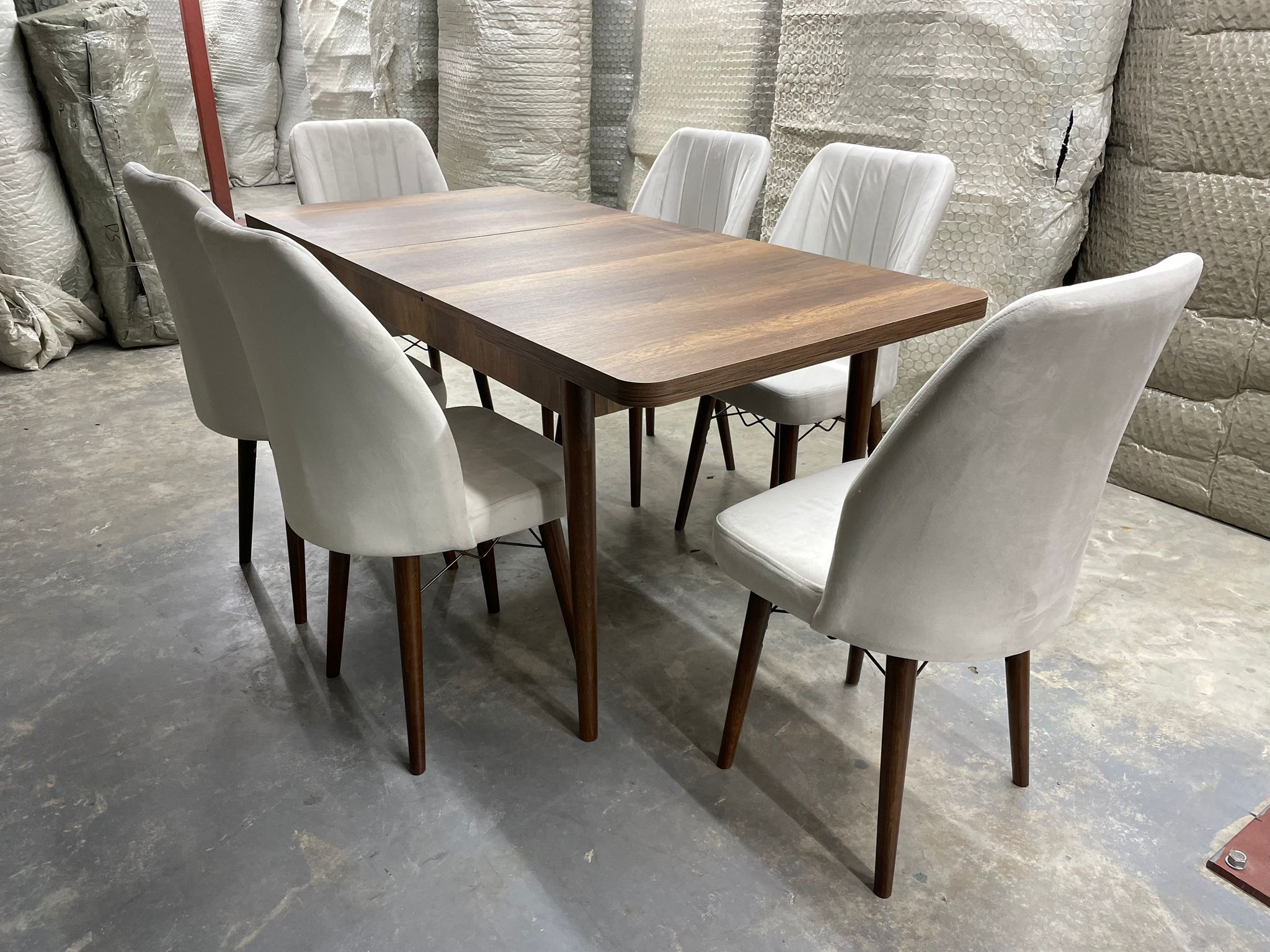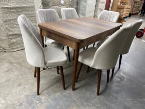 £460.00Original price was: £460.00.£360.00Current price is: £360.00.LINGA WOODEN EXTENDABLE DINING TABLE WITH 6 VELVET CHAIRS